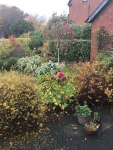 Thirteen years ago I sat in the same chair looking down at the garden, the grass cloaked in an array of yellow, orange and red leaves and the trees, some of them bereft, having already shed their leaves in preparation for winter. I remember wondering what bits of me was I going to have to shed? Was I going to grow old and spindly like the bare branches whose arms stretched out as if in prayer.